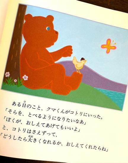 大きくなりたいコトリと、そらをとんでみたいクマくん。それぞれのゆめをかなえるために、ふたりはあるやくそくをします…。そこでコトリはクマくんに「ぼくを大きくしてくれたら、とびかたをおしえてあげるよ」。さっそくクマくんは、コトリをトレーニング。でもコトリは、ちっとも大きくならない。かんがえたクマくんは…。